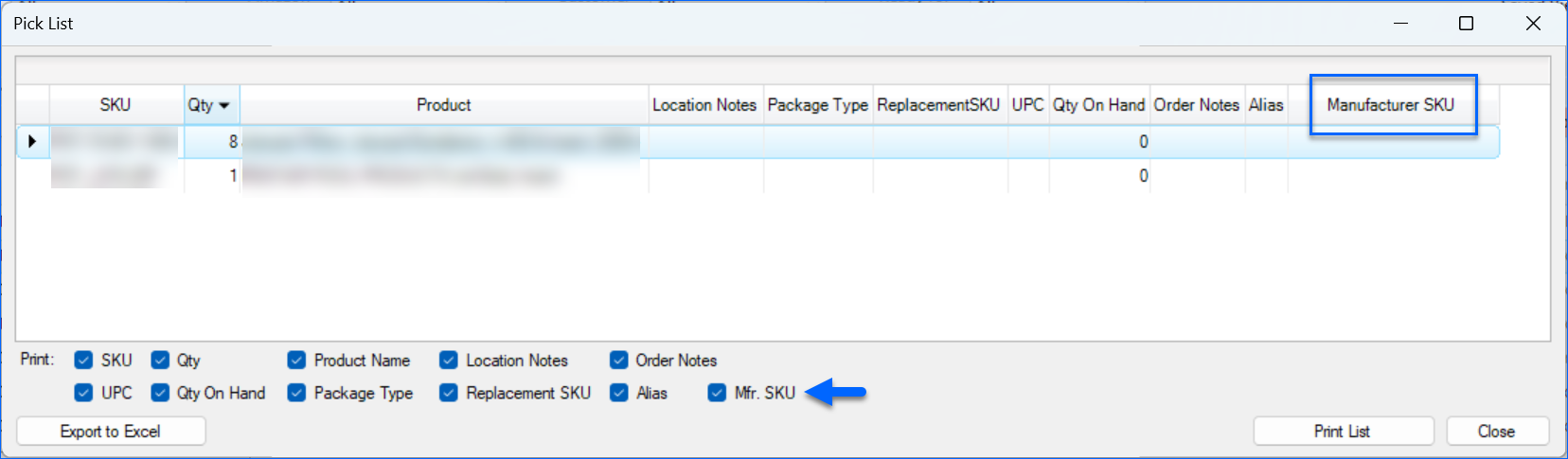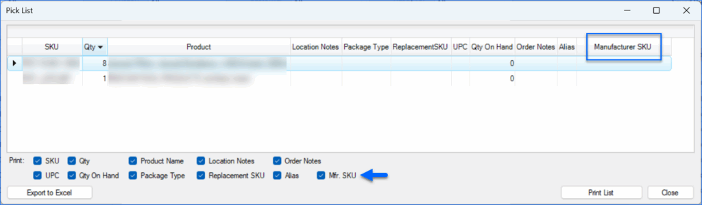 December 3, 2025 Manufacturer SKU in Picklist We have added the Manufacturer SKU column to the Generate Picklist pop-up window in Shipbridge. Post navigation PreviousNext