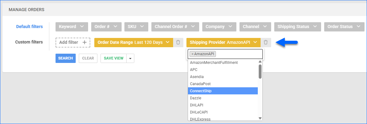 We have added a new filter on the Manage Orders page: Shipping Provider. It allows you to look up orders based on the source from which the labels were purchased. This is especially useful for differentiating whether you generated the label via Amazon Services: Buy Shipping or directly from the carrier (UPS, FedEx, etc).