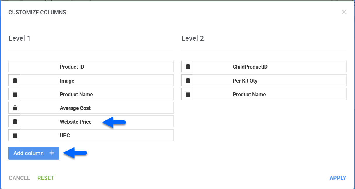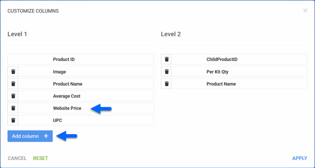 Website Price Column